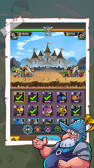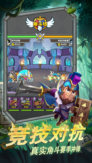 军临旗下官方版是一款以中世纪骑士联赛为主题的卡牌放置类卡通对战游戏。在画面采用了精致的二次元卡通风格,拥有多种造型各异的的角色骑士供玩家选择使用,放置战斗、离线挂机、资源全返,应有尽有,非常好玩有趣!并且与传统的放置手游不同,该游戏则更讲究阵容搭配,其内不仅包含战士、射手、法师、辅助四种职业,还拥有全新的战斗方式和丰富的卡牌策略搭配,以战士为例,坦克防御较高输出较弱,适合作为前排来保护后方的输出,让伤害最大化!玩家可以在战斗开始前选择5张英雄卡牌进行组合,通过双方卡牌角色进行对撞战斗、施放技能以及不同卡牌间的搭配连击,从而一决高下!