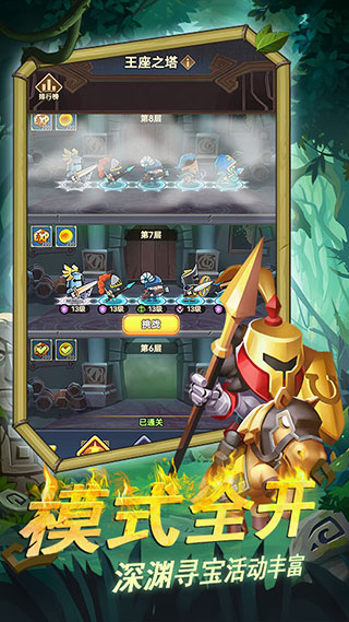 什么?你害怕资源不够用?那你想多了,我们不仅有兼具占矿、守矿双重玩法的宝藏洞穴,还有层层重兵把守的王座之塔以及双模式的无尽深渊,各类活动层出不穷,奖励丰厚,等你来获取!