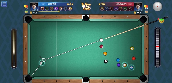 2、滑动手指,将球杆瞄准线与红色线重合。