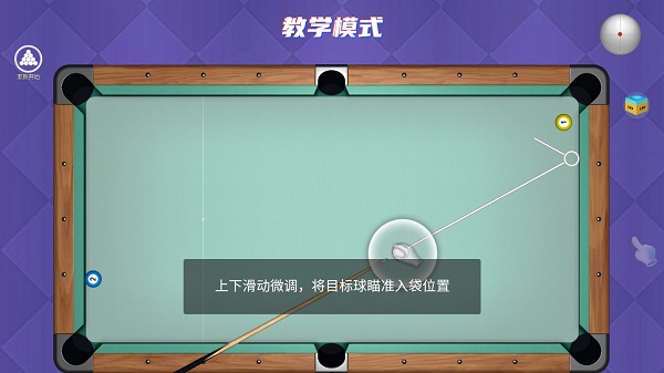 3、上下滑动微调,将目标球瞄准入袋位置。