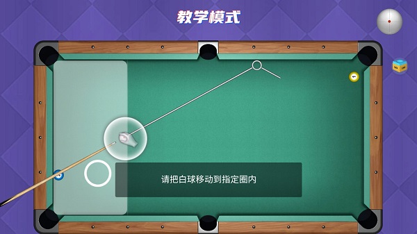 基于新手玩家第一次上手,小编整理了关于这款游戏的基础教学,下面一起了解一下吧!1、首先从摆球开始,请把白球移动到指定圈内。