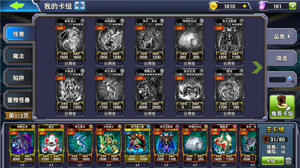 2、怪兽卡:上下拖动可调整战斗阵容中的怪兽卡牌