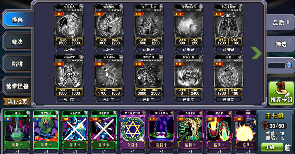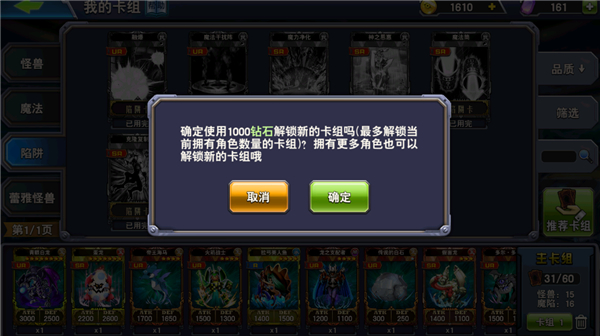 4、陷阱卡:上下拖动可调整战斗阵容中的陷阱卡牌