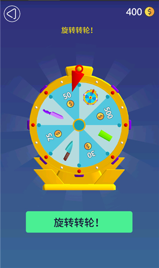 5、在下方还有一个抽奖转盘,在这里可以获得金币奖励、小刀等。