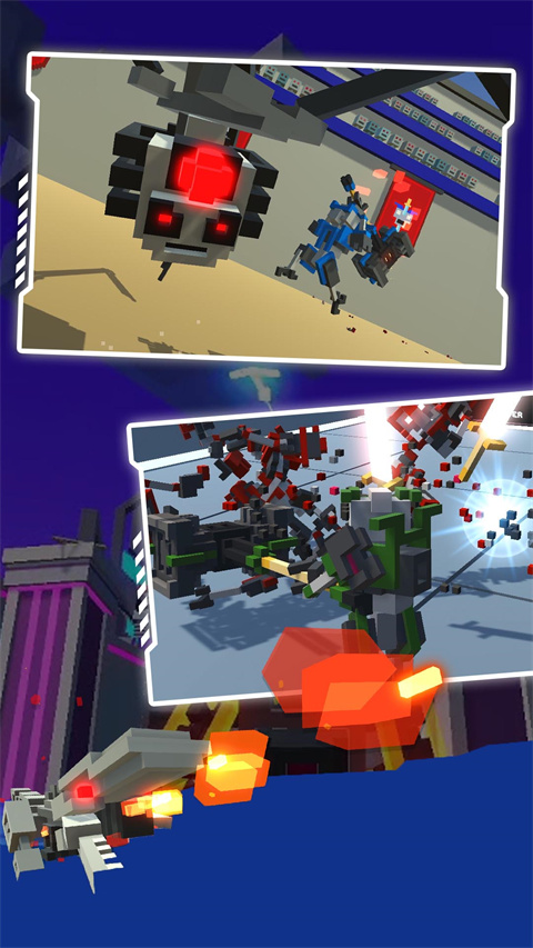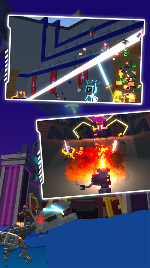 机器人角斗场官方正版是一款以机甲为题材的第三人称刀剑格斗游戏,该游戏采用的是全新的3D物理引擎打造而成,且它还是有同名的端游游戏改编而来,因此游戏不但延续继承了端游的精彩剧情、精致的画面护画风,而且还创新了极为逼真的格斗打击感和炫酷华丽的特效,光是从其表面而言就一定能给予你前所未有的战斗体验。同时,由于机器人角斗场最新版本采用的是3D像素+科幻风格+第三人称视角,所以游戏的玩法必然也是极为丰富的,在游戏中你将操控机甲与敌对势力展开最为激烈的斗争,而在这个过程中你可以拳打脚踢,也可以拿起武器进行劈砍、射击,更可以扑棱你的双臂嘲弄你的对手,简而言之其内的玩法十分的自由,也相当的具有挑战性。