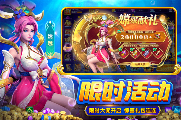 1、龙宫仙会:捕获龙太子得龙鳞,即可开启龙舟!满屏爆鱼得万金!还有可爱“金童”、“玉女”等您来捕获哦。