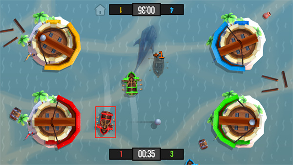 5、当玩家击中其他颜色的船即可加1积分;
