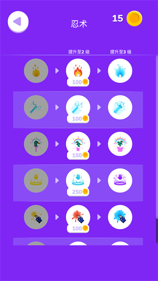 4、每次过关都会得到金币奖励,这些奖励可以用来升级忍术,提高攻击力。