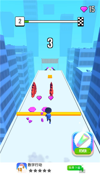2、在前行的过程中你要不断的使你的木棍变长,穿越重重关卡,以此达到终点;