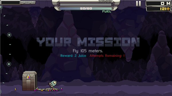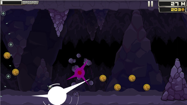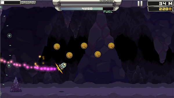 飘飘小火箭(Flop Rocket)是一款虐心的休闲闯关类手游,游戏中你将是一个资金链严重不足的宇航员,在太空中漫游,但贫穷限制了你的自由,你只能在充斥着岩石蠕虫还有太空飞鸭的无尽岩洞上的起飞,不过好在上天还给你和你的团队留下了一扇友谊的窗,你可以靠着他人留下的宇宙币发家致富。飘飘小火箭游戏有点考验玩家的数学知识,在起飞时一定要找好角度,控制好力度,否则可能一不小心就和岩石块来个亲密接触。