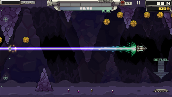 4、通过发现强化道具,轰炸太空虫、核爆太空鸭,并炸毁钟乳石