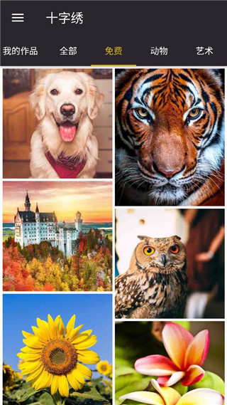 5、玩家可以在首页选择各种类型的十字绣进行创作;