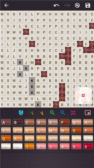 十字绣手游是一款非常有意思的休闲益智小游戏,游戏玩法超级简单,新手玩家进入以后可以先学习新手教程,学习完成后打开一副想要画的作品就可以开始绘画,双指在画布上进行移动,双击拖动或缩放画布,点击颜色的字母填入网格,当你选中字母时,画布上相应的字母区块会变成深色帮助玩家更好的填色。如果不小心绣错网格,点击右上角的撤销或者是点击下方的拆线针一次性拆除全部错误之处即可。此外,十字绣官方正版不仅可以学习到十字绣的实用技巧,还能够磨练玩家的耐心,提高玩家的审美。