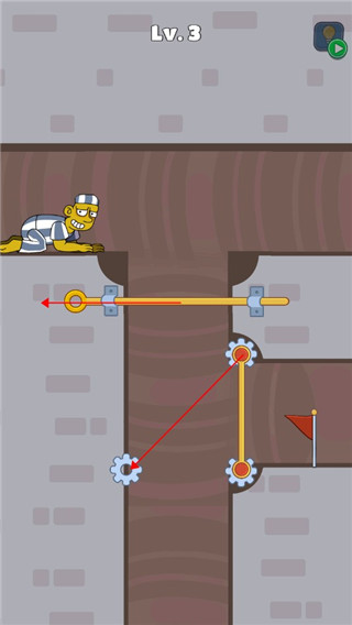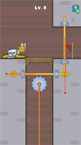 3、第四关,先把横杆往左边拖走,在将您一个往下拉,速度要快,不然就无法在陷阱上升前通过。