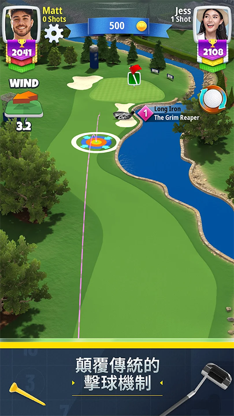 • 实现您的高尔夫梦!选择您的球杆和高尔夫球,在迷人的高尔夫球场上,与世界各地的高尔夫对手展开激烈对决。