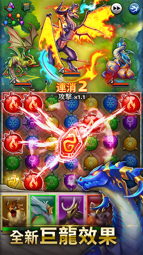 游戏的战斗还是偏向回合制的,不过在战斗过程中玩家可以使用三消来增加输出,挑战boss的时候很有用,玩家需要熟练运用,三消难度总体还是偏低的。