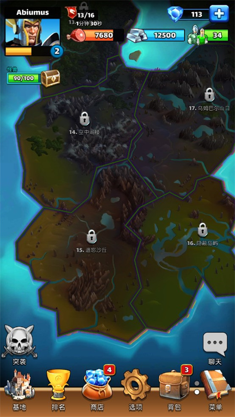 游戏的地图按键上,我们看到有raids和quests的图标,这是游戏的另外2个功能:个人天梯与限时任务