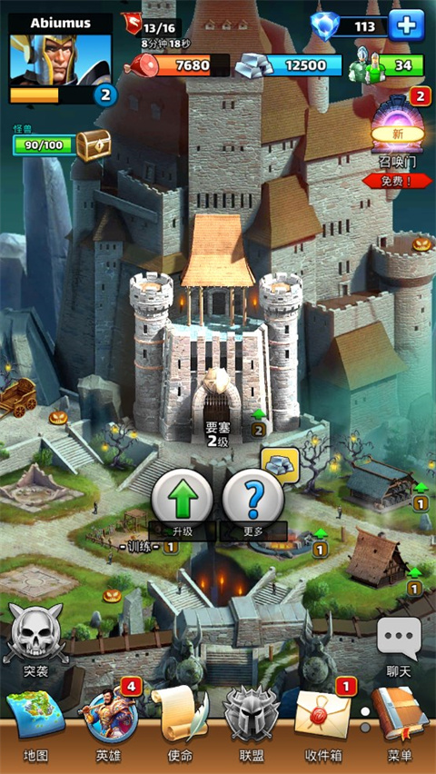 在这里,你首先要做的是升级你的主城等级,你所有其他的建筑等级不能超过主城等级
