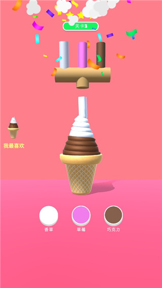 3、超解压,超上头,挤压冰淇淋的过程真的是一种享受呀,强迫症更要游玩,制作出形状最完美的甜筒吧;