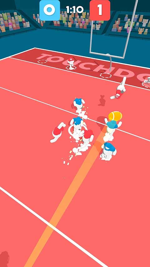橄榄球大作战官方版(Ball Mayhem)是一款以橄榄球对战的玩法为核心的休闲趣味竞技小游戏,游戏在画面上采用卡通画风,画面精致清新,角色Q萌可爱,为玩家带来良好的视觉效果体验。 橄榄球大作战手游玩家将会到体育赛场,和技术高超的橄榄球运动员进行竞技,面对其他球队展开激烈的战斗,三分钟一把的极速竞技体验,让你的碎片时间变得更加丰富多彩,同时游戏时间有限,一定要快速拿分,对抢到球队友做好保护,你需要在选手中脱颖而出,把球送到球门或者挡住对手,灵活地向前移动得分。除此之外,橄榄球大作战手游操作简单,而且你还可以使用道具,有丰富的橄榄球皮肤可以使用,并且游戏支持多项在线比赛,可以和其他现实玩家一起进入比赛场,非常有趣。