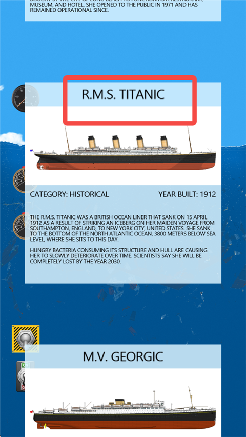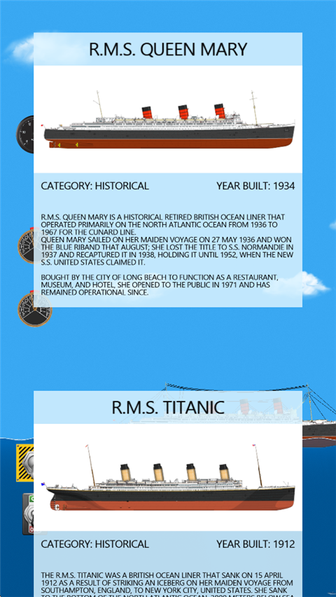 1、拥有泰坦尼克号、战列舰、单帆船、贸易商船等多种船只。